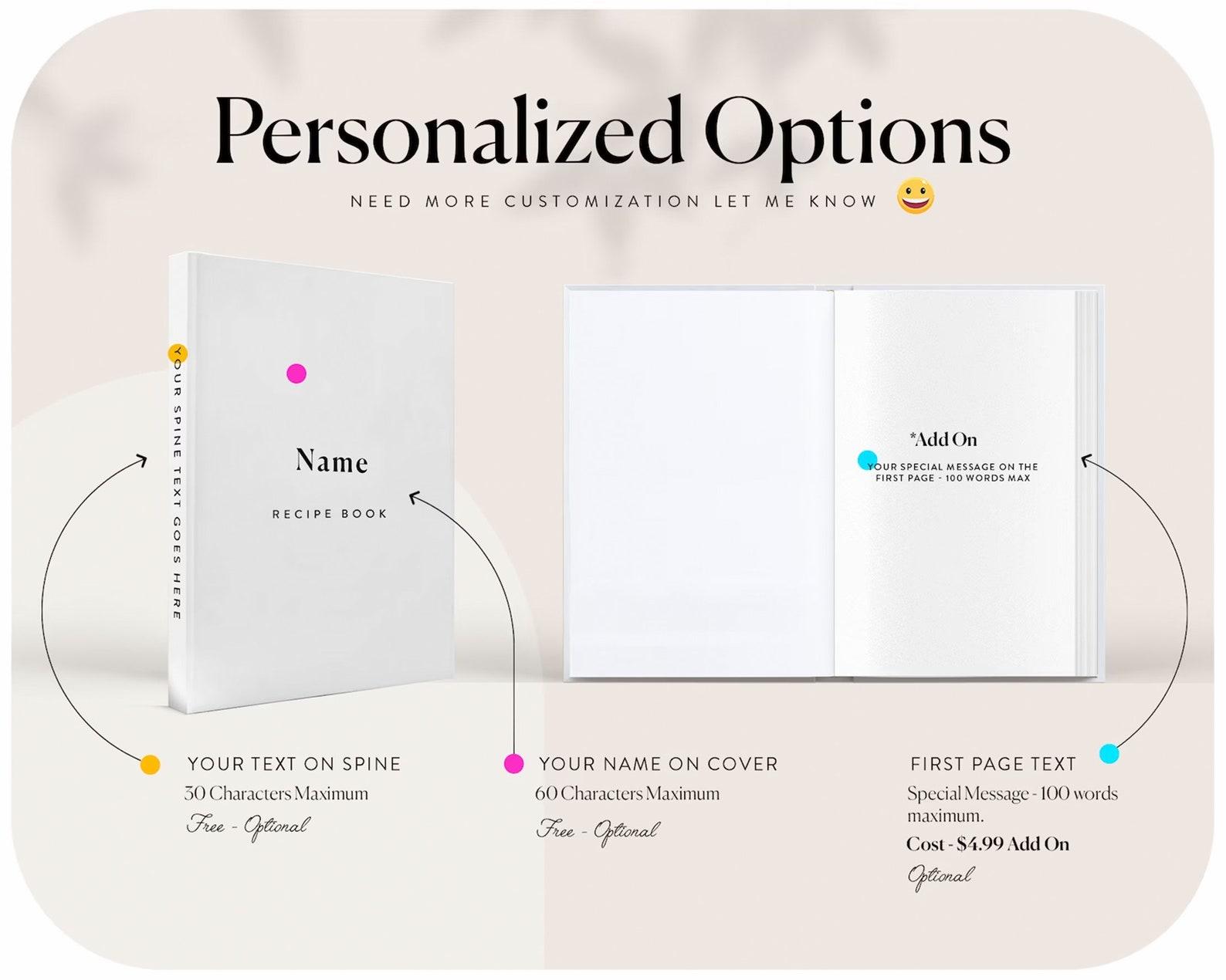 Embrace efficient meal preparation with our Personalized Meal Planning Book. This Custom Recipe Scheduler is a handcrafted planner that revolutionizes your kitchen routine. A unique gift that marries practicality with personal touch. We encourage you to put your name on its soft, velvet feel cover to make the Recipe Book fully yours and take in the fresh smell of its silky pages!