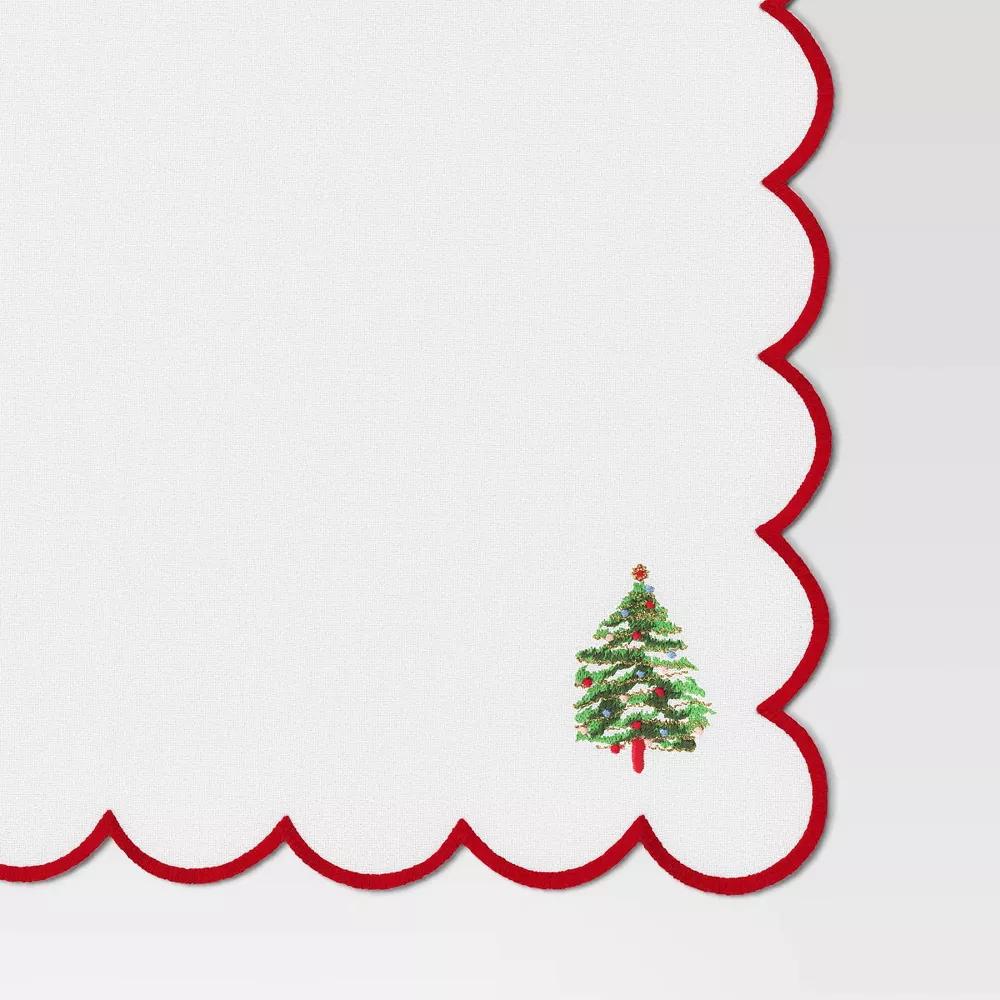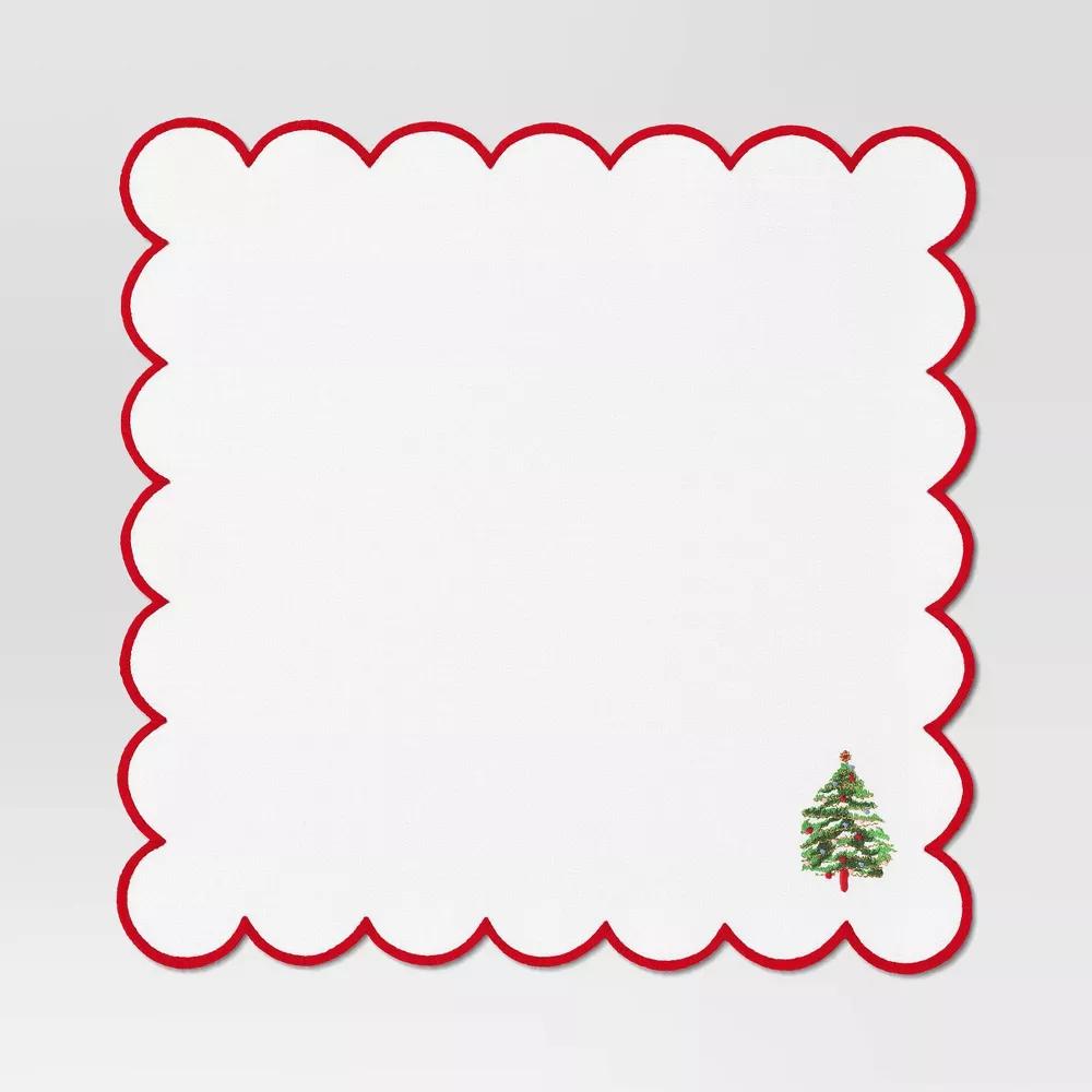 Trim Tree Cloth Napkin Ivory with Red - Threshold™: 18"x18" Cotton, Machine Washable, Solid Pattern, Kitchen Textile