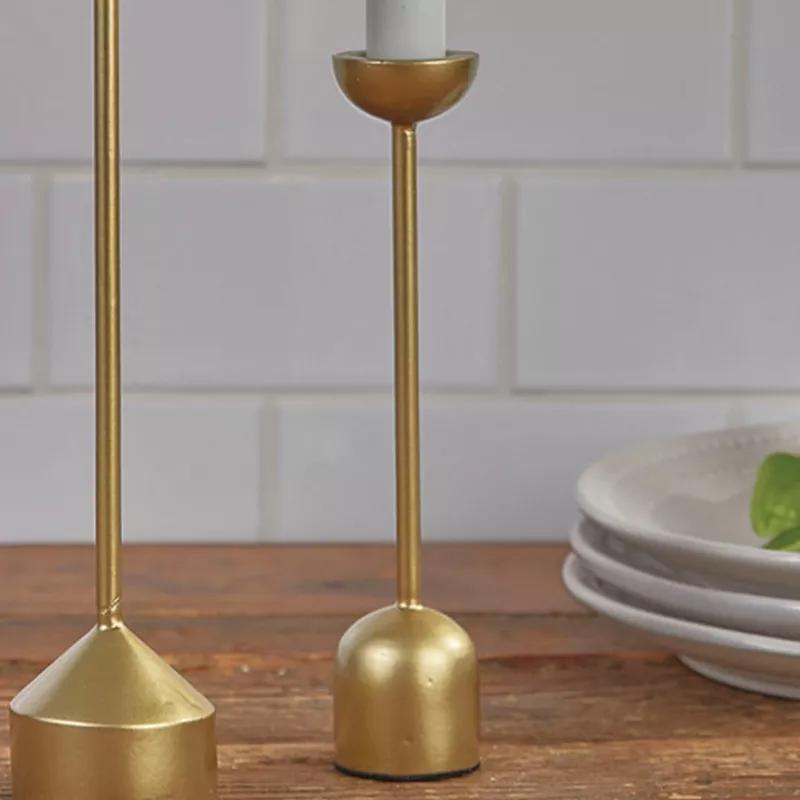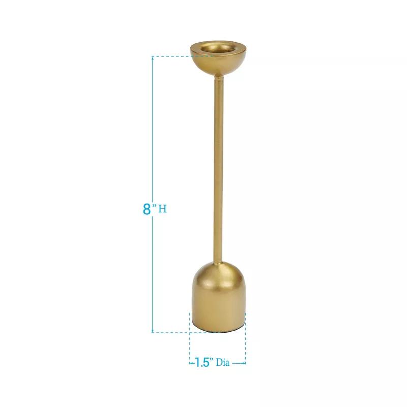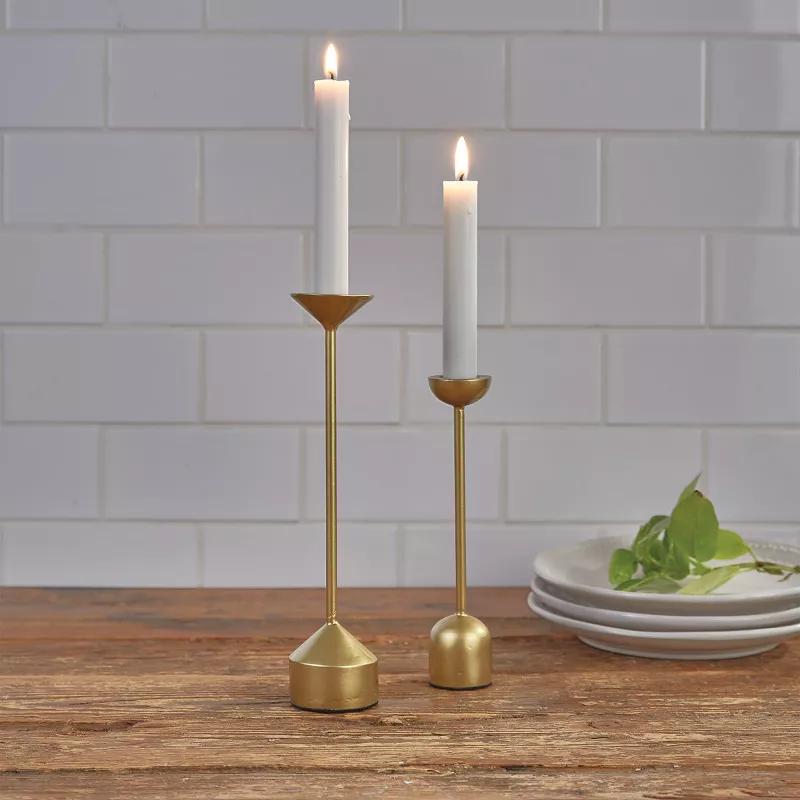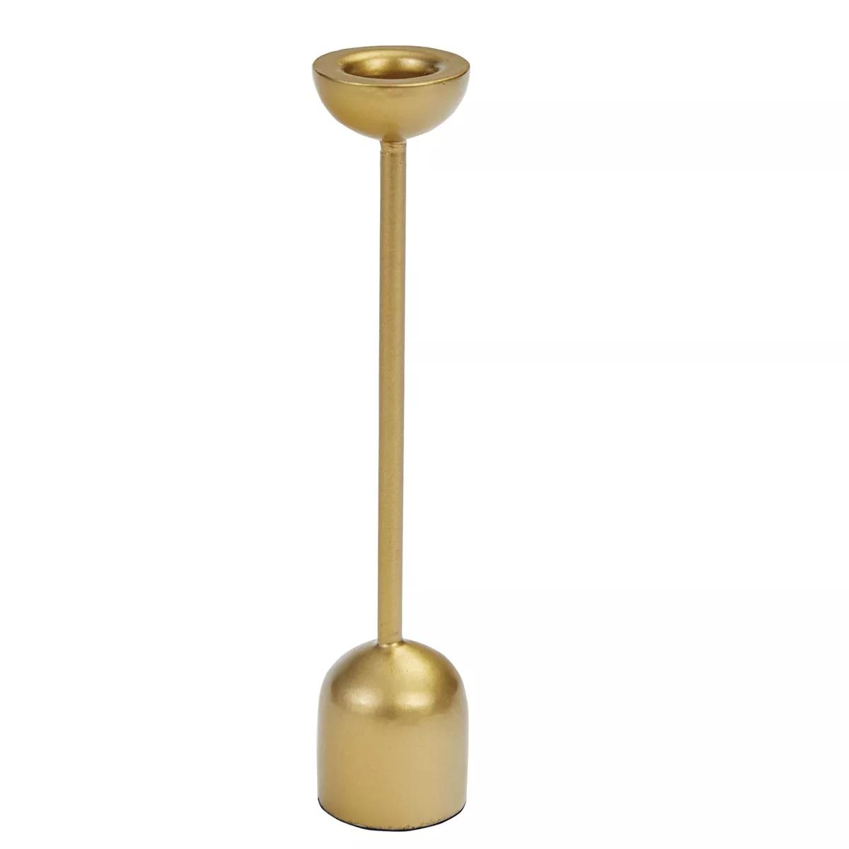 Add a touch of contemporary appeal and elegant glam to any space in your house with this mid-century chic taper holder. Bringing light to the surrounding area with function and aesthetic design, the matte gold finish radiates when candles are set aflame. Perfect for creating cozy ambiance in a kitchen, fireplace mantel, or living room space. Introduce a lovely modern statement by arranging it with an assortment of decorative pieces for a compelling centerpiece display or decorative arrangement in any room.
