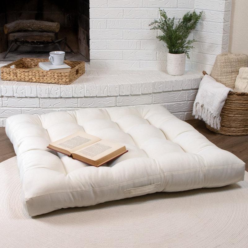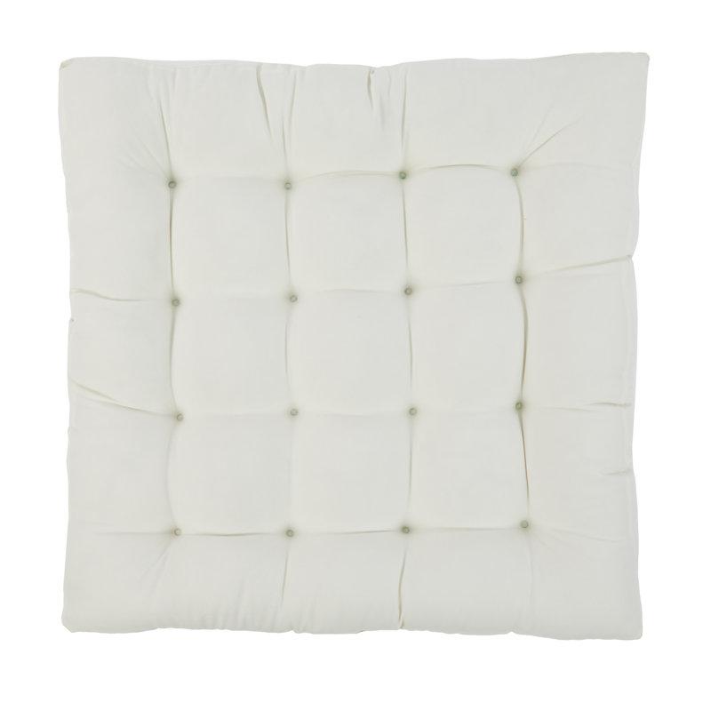 This reversible floor pillow creates a spacious spot to sprawl and relax in any room. Measuring 40" square, it's stuffed with a polyester fill that provides just the right amount of support as you read or watch your favorite movie. The button-tufted pillow cover is made from polyester in a solid hue that works with almost any style or color palette. It also wraps around the insert and is sewn shut to keep everything in place. For hassle-free upkeep, simply spot-clean and lay flat to dry.