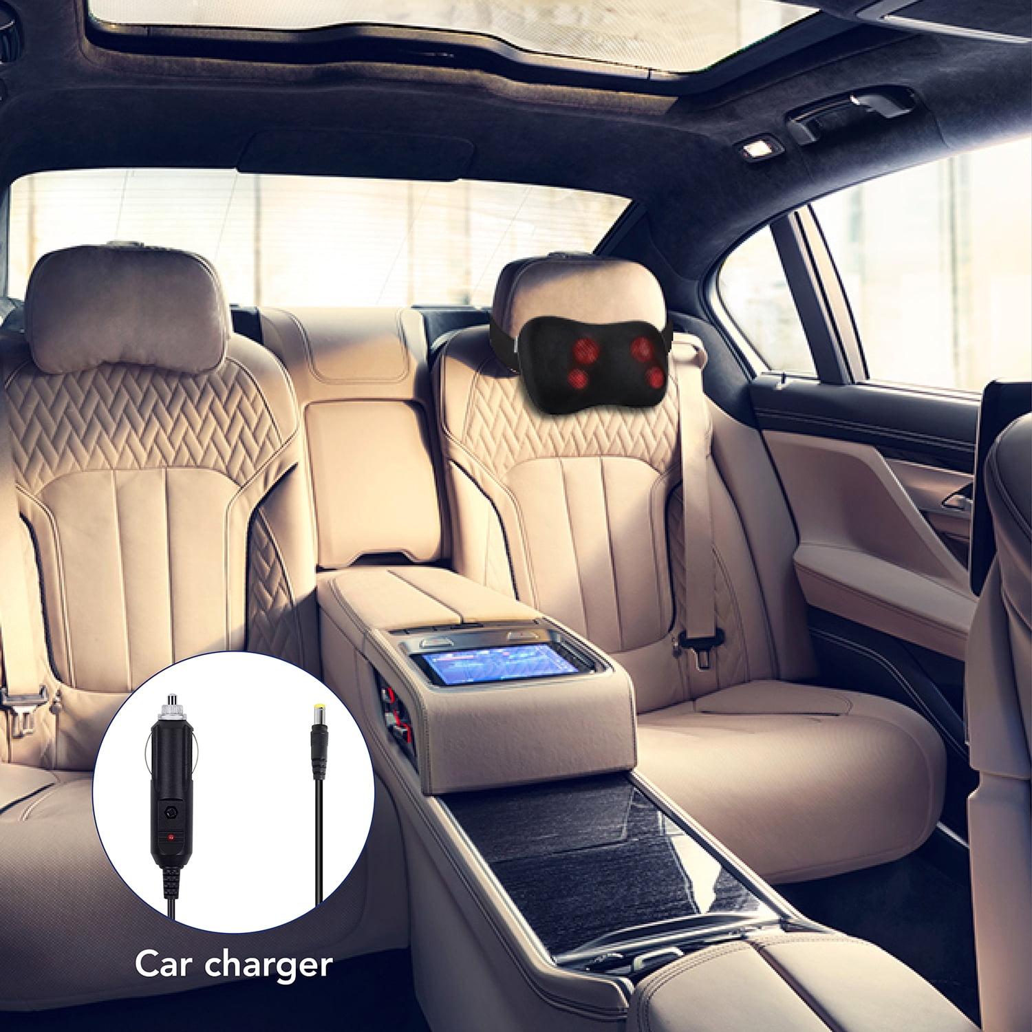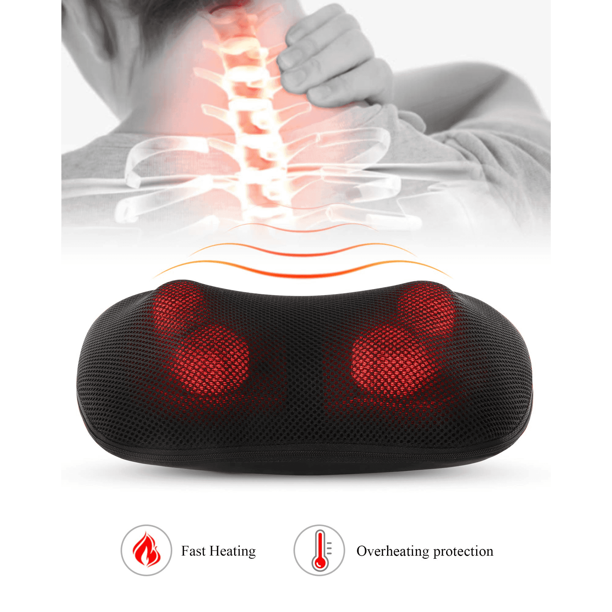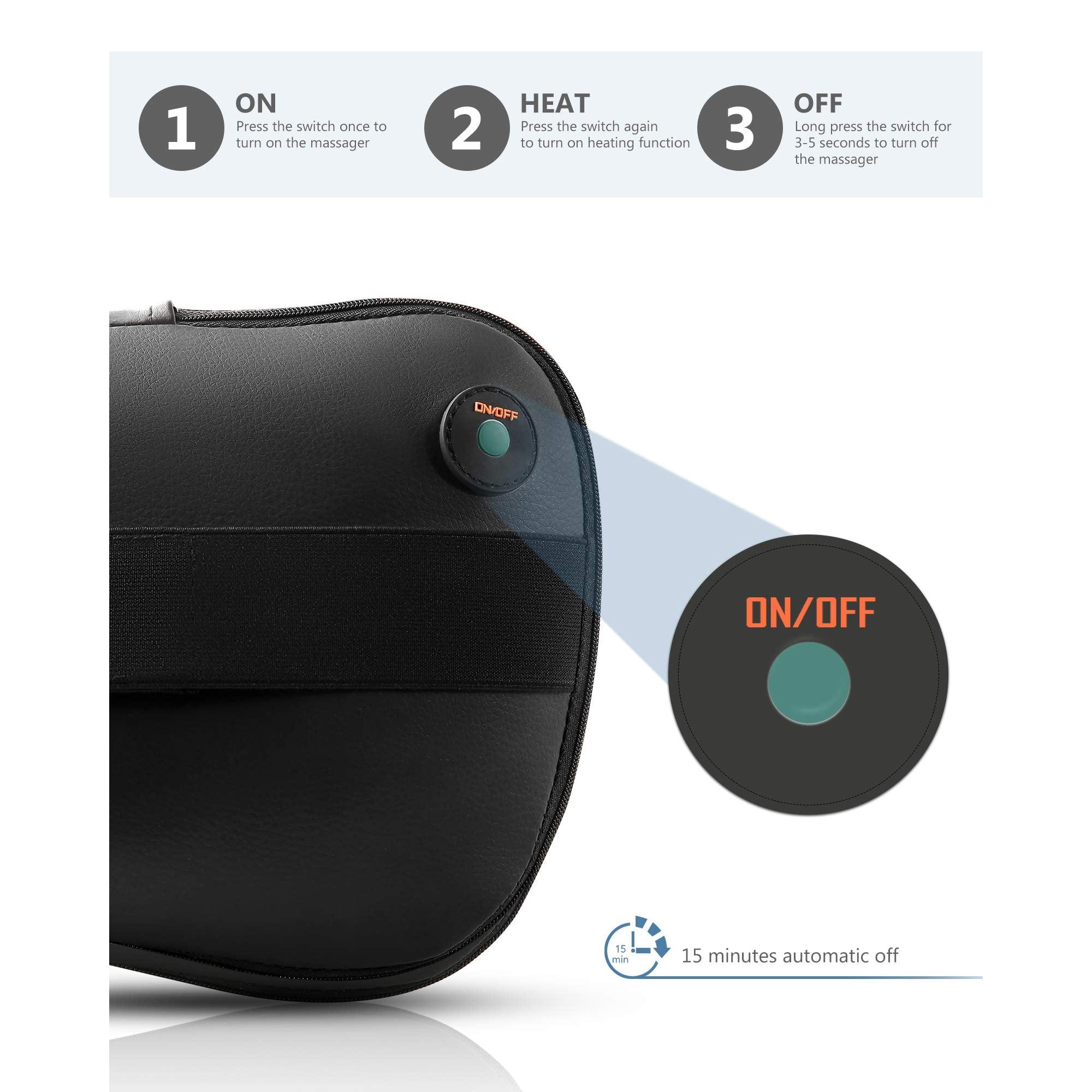 SHIATSU MASSAGER WITH HEAT - With 4 kneading massage balls and its reinforced heating function, customizes the compact pillow massager your massage experience. The optional soothing heat function provides a warm and gentle massage to further relieve tight muscles and promote blood circulation. SKIN FRIENDY MATERIAL - The massage pillow is wrapped in 2 layers of high-quality fabric. The inner layer is made of nylon, and the outer layer is made of sponge mesh. The nylon layer is resistant, tensile and smooth so that it can ensure its durability. The sponge mesh layer improves the comfort of massage, because its soft elastic texture buffers the hardness of massage knobs and your skin will feel more breathable. PORTABLE, EASY TO USE - It has compact size, very portable. You can use it at home, or take it into your car or office. You can also tie it to office seats or car seats, because our massage pillows have strong elastic bands behind them. The operation is very simple. All your need to do is connect it to the power and press the start button. 15 MIN AUTOMATIC SHUTDOWN - The massager will automatic shut-down in 15 minute. This function is based on the most scientific massage time. It can ensure the safety of users and avoid overheating of the machine caused by long time continuous use. We do not recommend excessive massage, just appropriate. MASSAGE PILLOW NOT ONLY FOR NECK - You can use it to massage your head, neck, shoulder, back, waist, abdomen, thigh, calf and feet. It can help you quickly relieve muscle pain and relieve fatigue. It is a caring gift for your family and friends, suitable for all adults and teenagers, man and woman.
