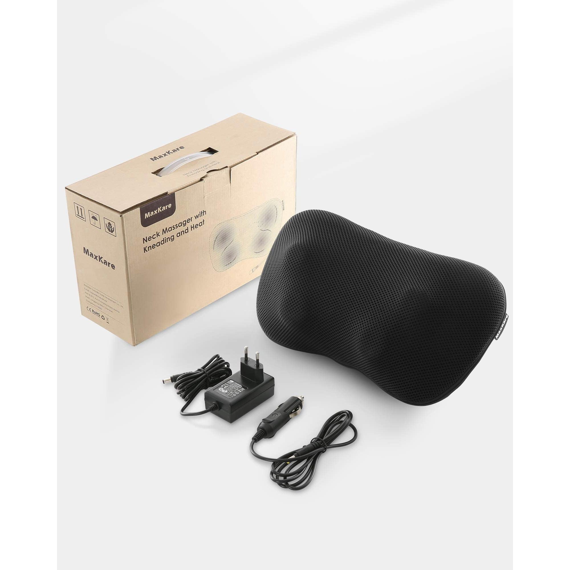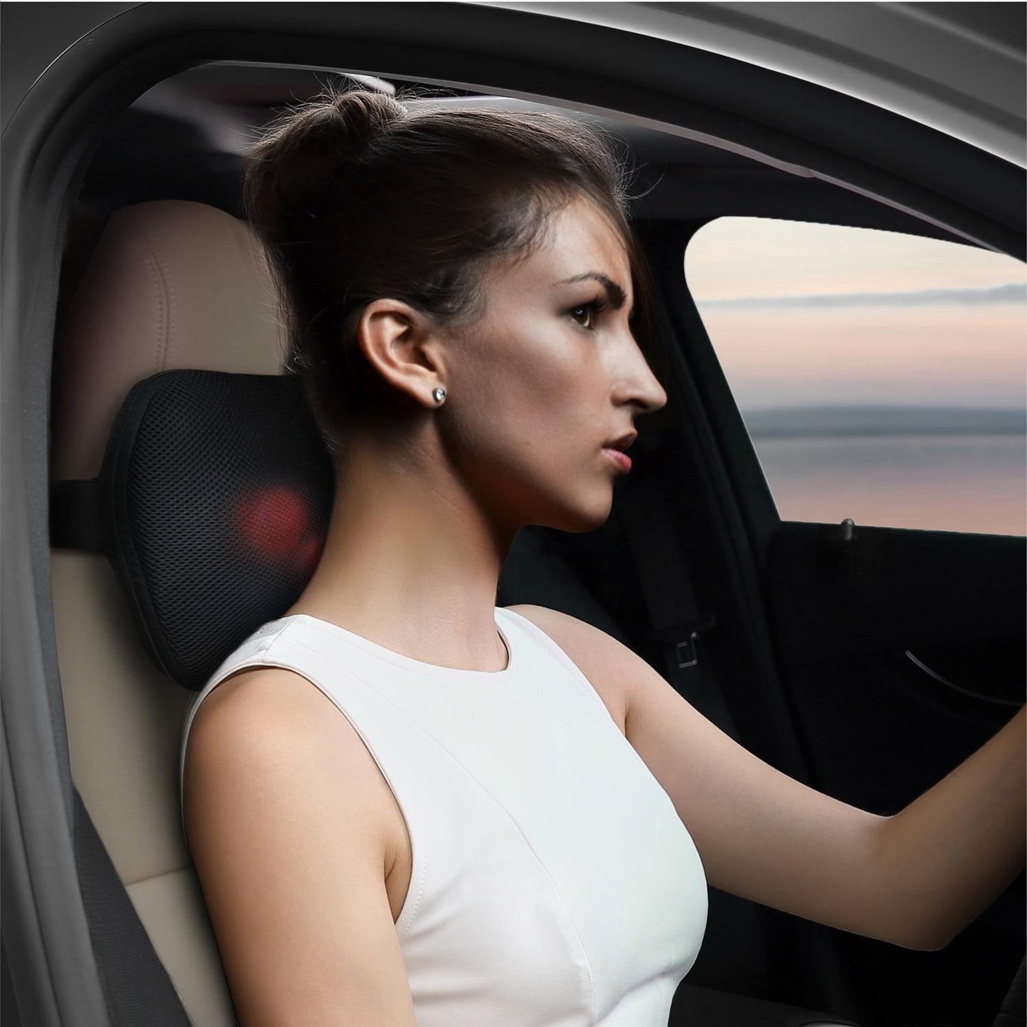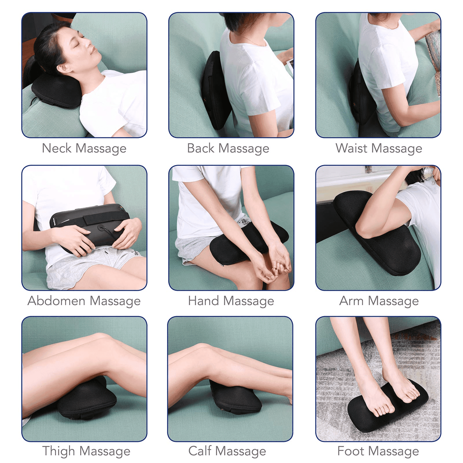 SHIATSU MASSAGER WITH HEAT - With 4 kneading massage balls and its reinforced heating function, customizes the compact pillow massager your massage experience. The optional soothing heat function provides a warm and gentle massage to further relieve tight muscles and promote blood circulation. SKIN FRIENDY MATERIAL - The massage pillow is wrapped in 2 layers of high-quality fabric. The inner layer is made of nylon, and the outer layer is made of sponge mesh. The nylon layer is resistant, tensile and smooth so that it can ensure its durability. The sponge mesh layer improves the comfort of massage, because its soft elastic texture buffers the hardness of massage knobs and your skin will feel more breathable. PORTABLE, EASY TO USE - It has compact size, very portable. You can use it at home, or take it into your car or office. You can also tie it to office seats or car seats, because our massage pillows have strong elastic bands behind them. The operation is very simple. All your need to do is connect it to the power and press the start button. 15 MIN AUTOMATIC SHUTDOWN - The massager will automatic shut-down in 15 minute. This function is based on the most scientific massage time. It can ensure the safety of users and avoid overheating of the machine caused by long time continuous use. We do not recommend excessive massage, just appropriate. MASSAGE PILLOW NOT ONLY FOR NECK - You can use it to massage your head, neck, shoulder, back, waist, abdomen, thigh, calf and feet. It can help you quickly relieve muscle pain and relieve fatigue. It is a caring gift for your family and friends, suitable for all adults and teenagers, man and woman.