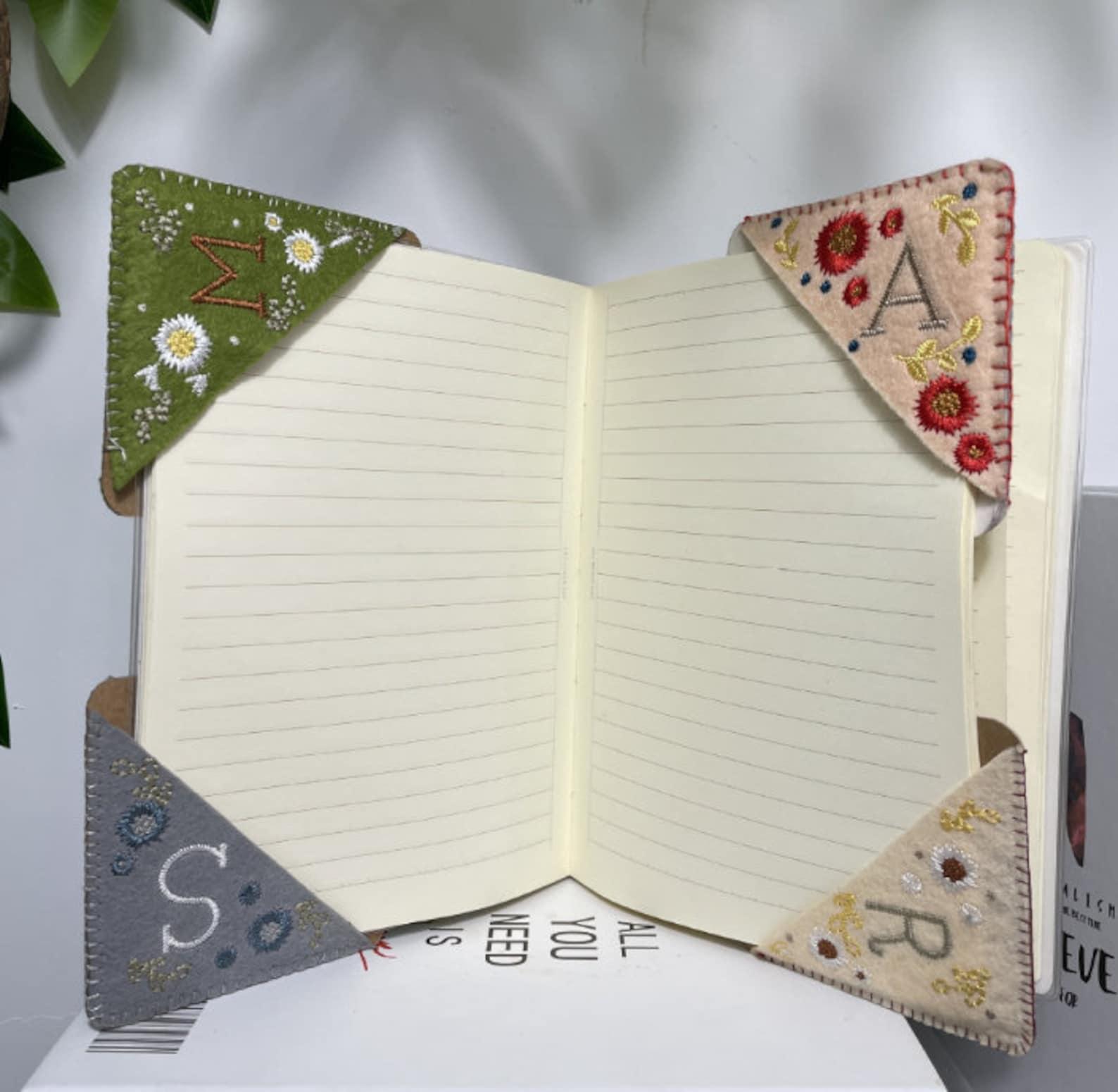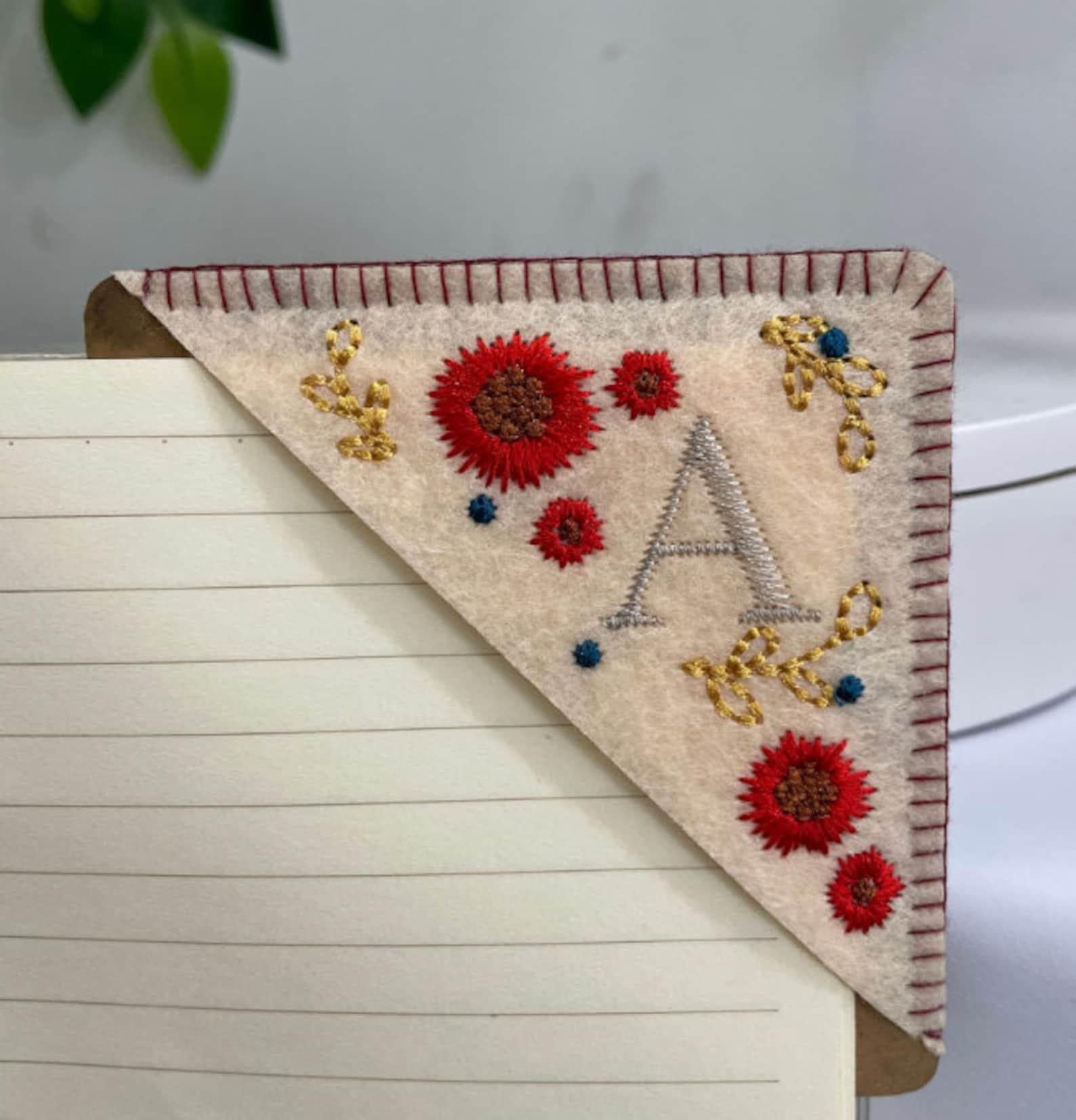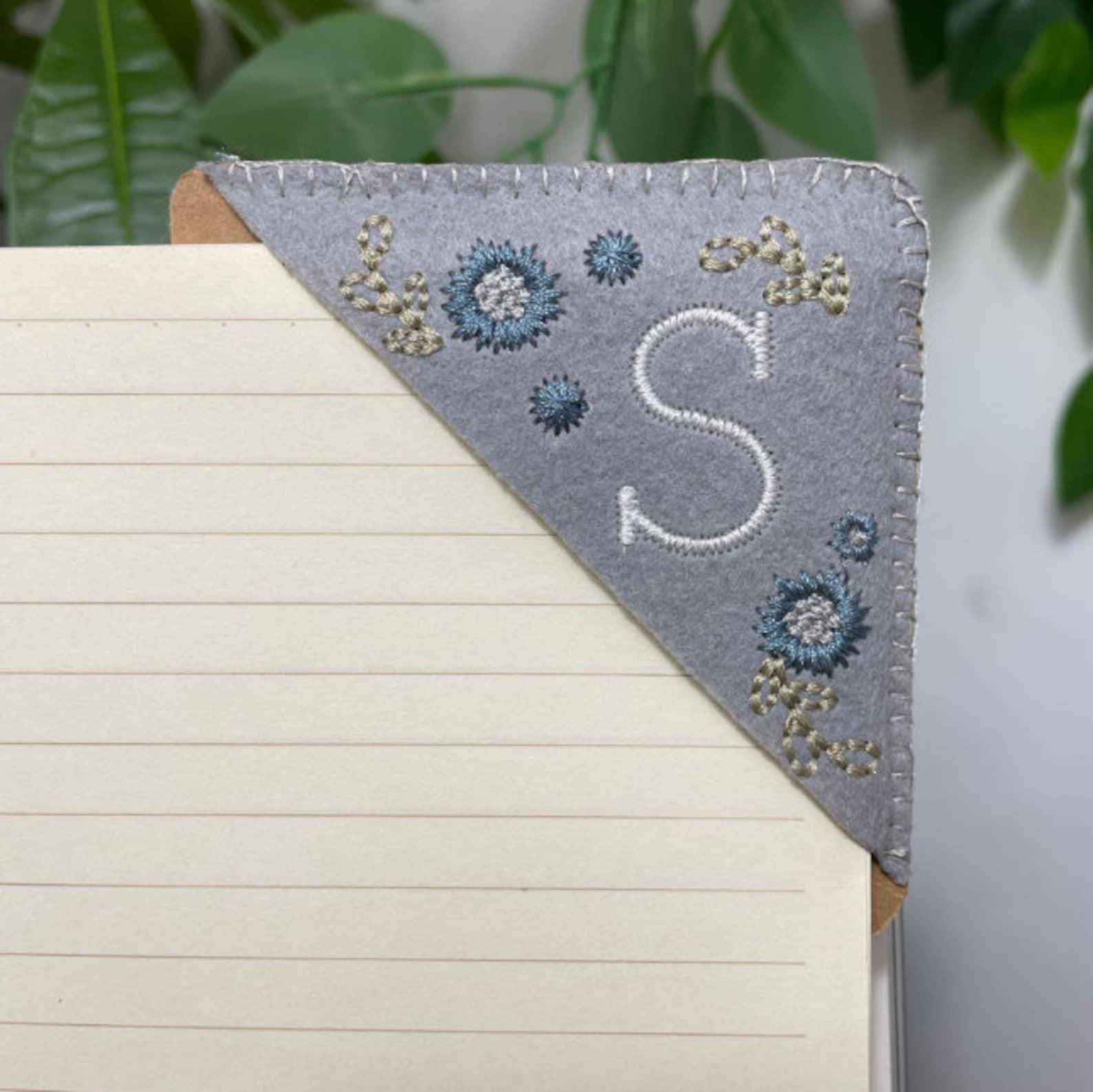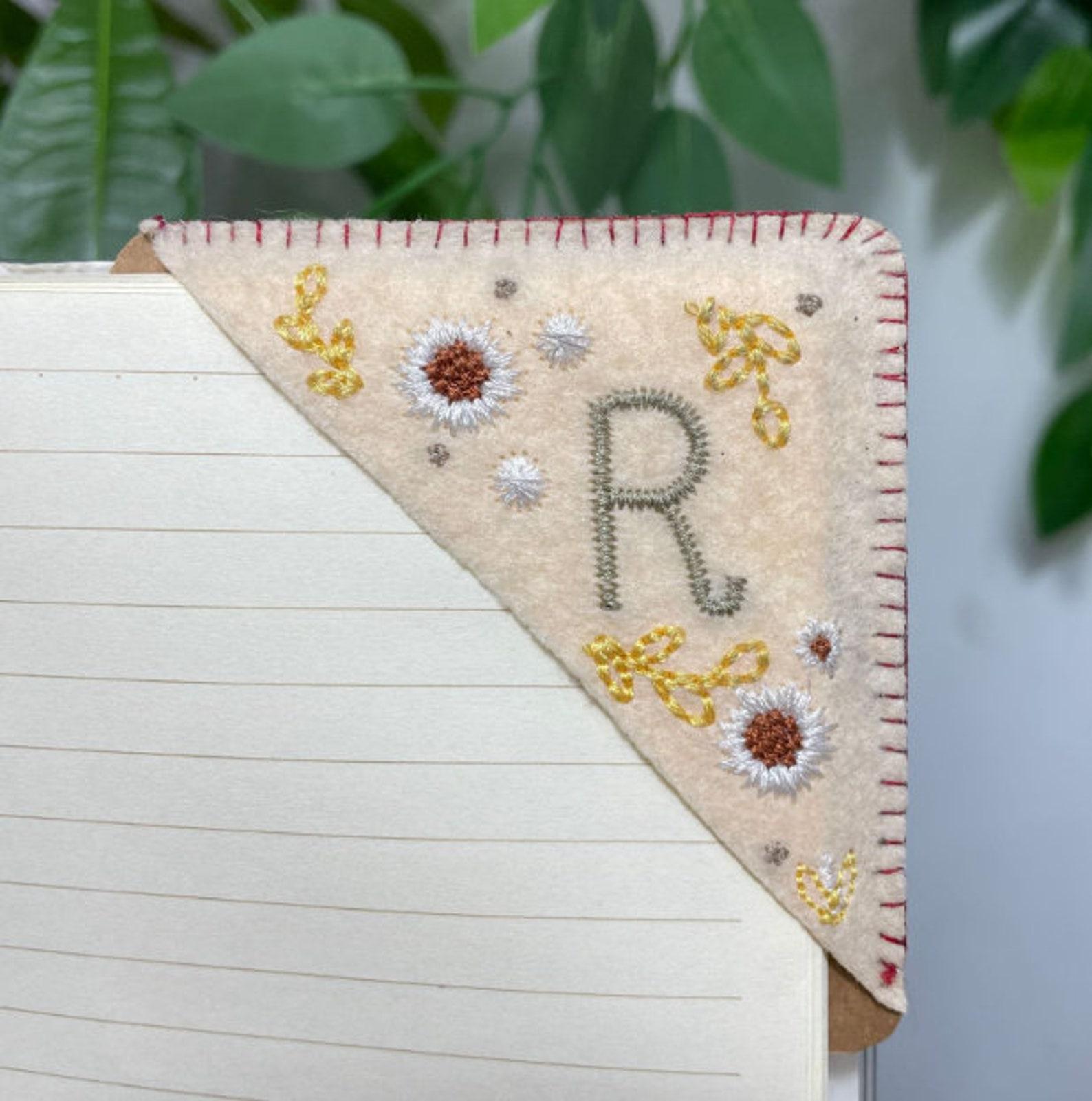 Personalized Hand Embroidered Corner Bookmark- 26 Letters and 4 Seasons- Book Corner Decoration- Felt Triangle Page Stitched Corner Bookmark