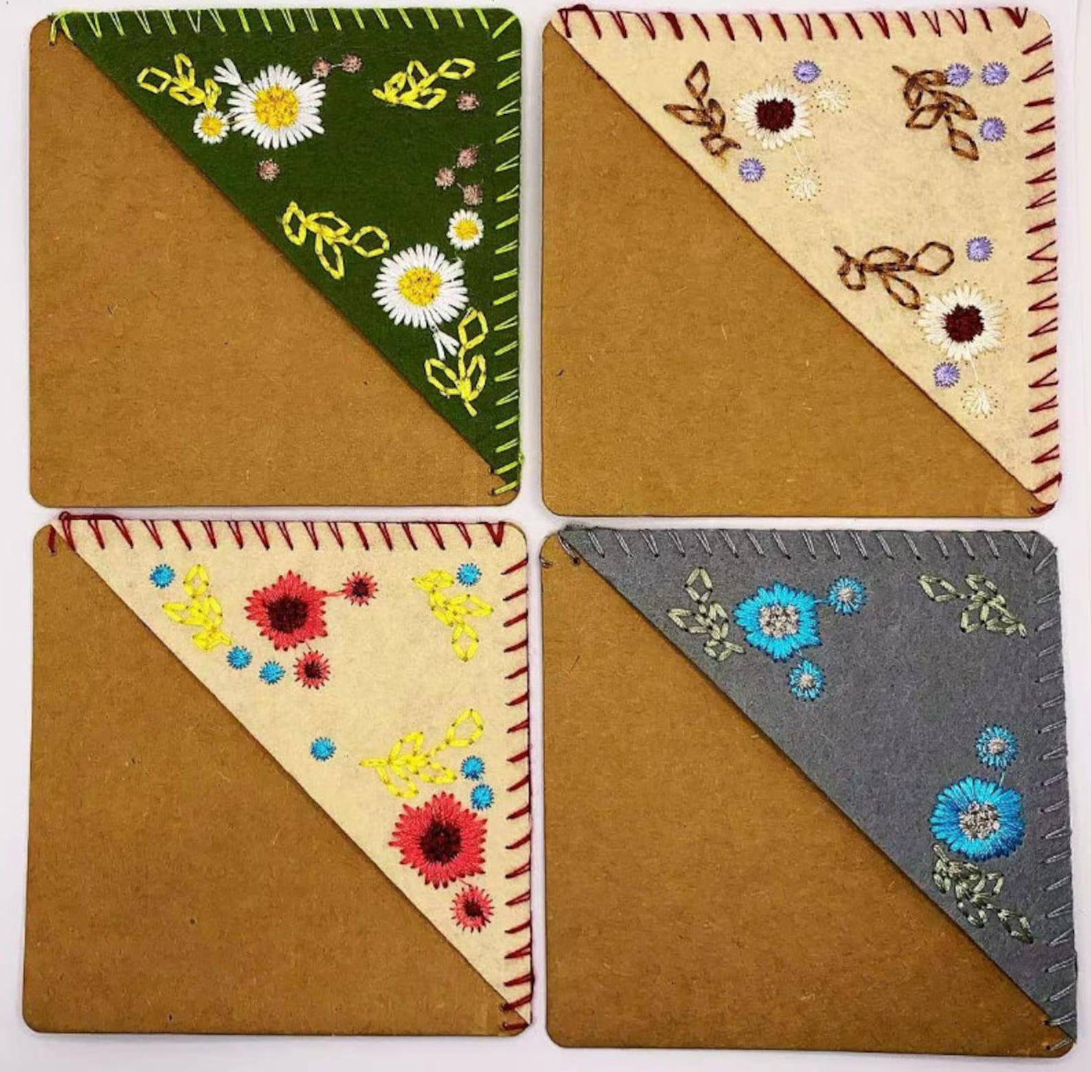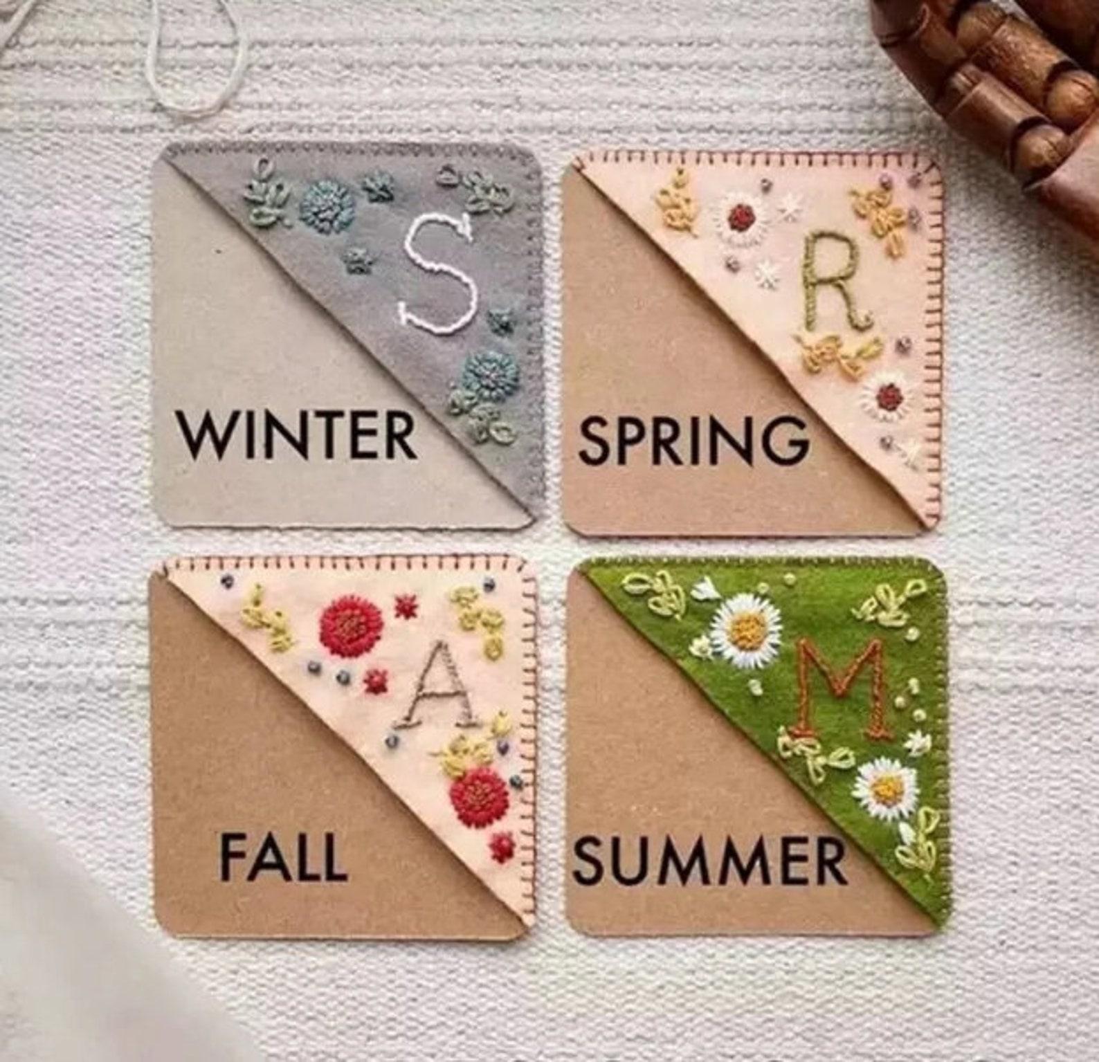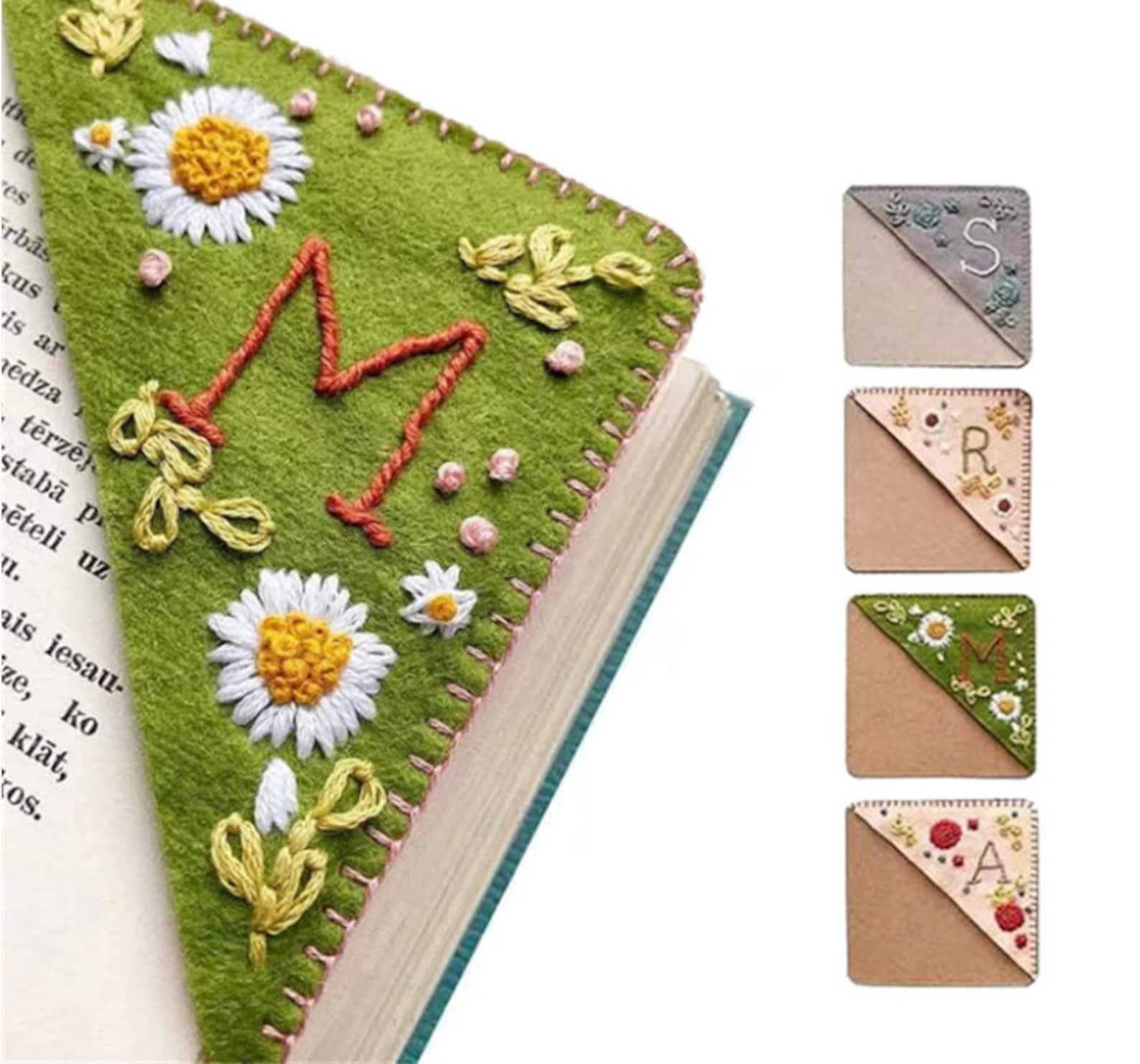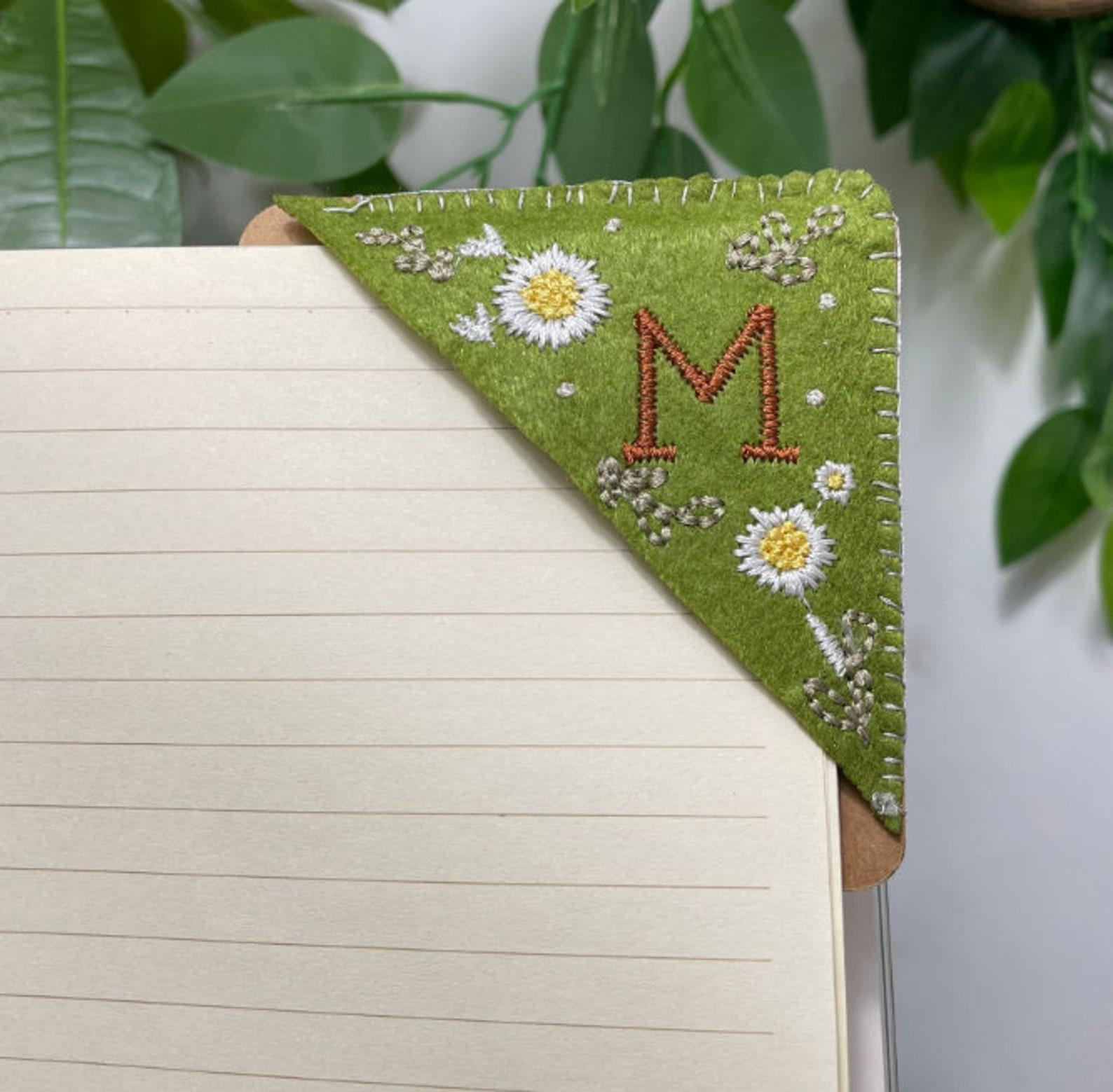 Personalized Hand Embroidered Corner Bookmark- 26 Letters and 4 Seasons- Book Corner Decoration- Felt Triangle Page Stitched Corner Bookmark