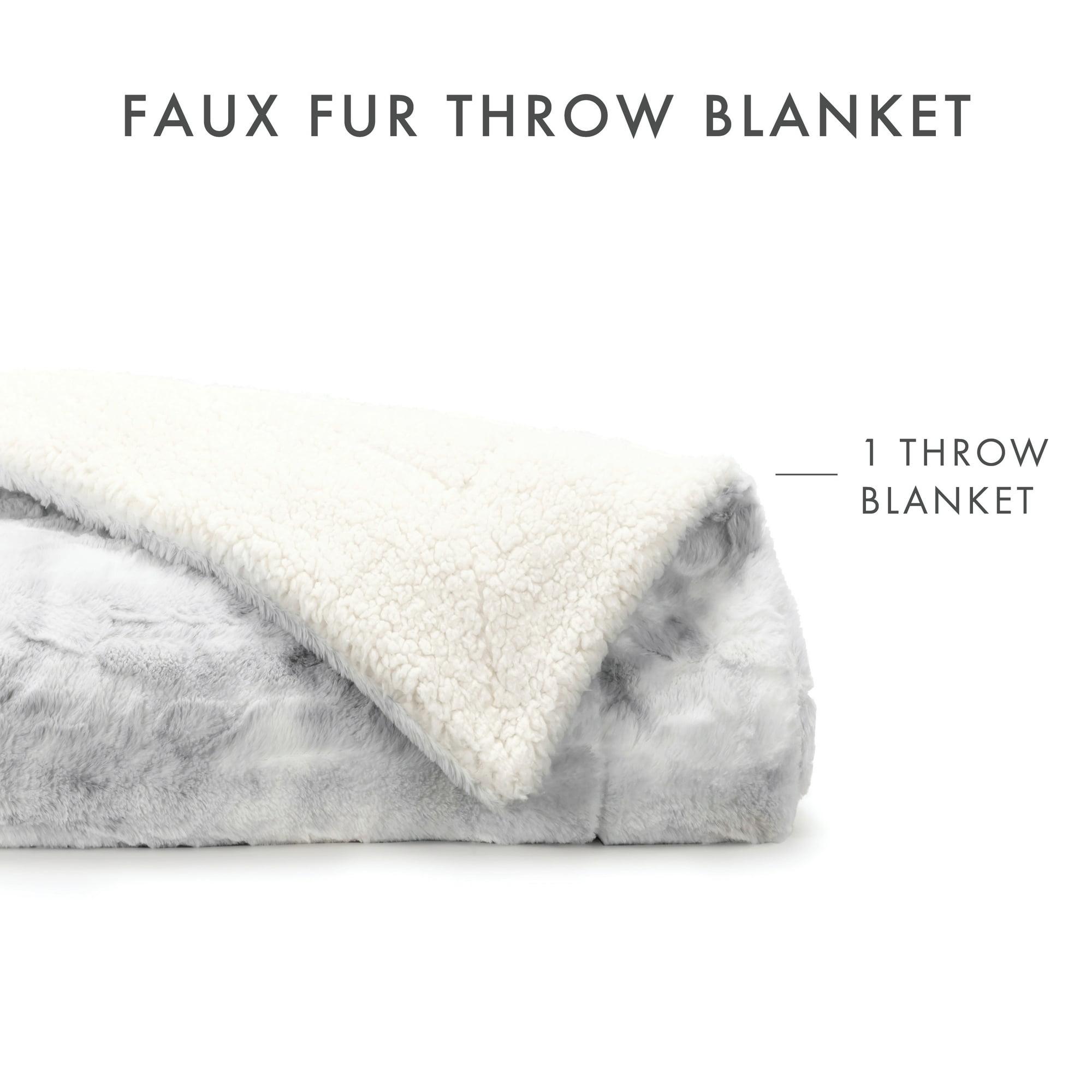 Faux Fur Throw Blanket Light Gray Tie Dye