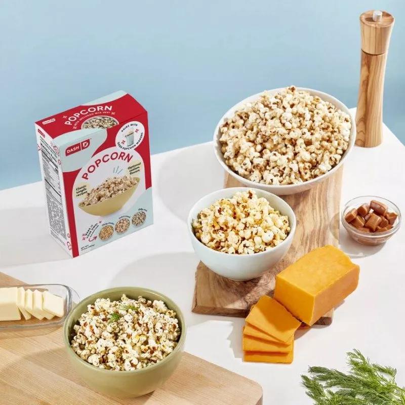 Dash Popcorn with Cheesy Cheddar, Salted Caramel, and Dilly Ranch Mix-ins