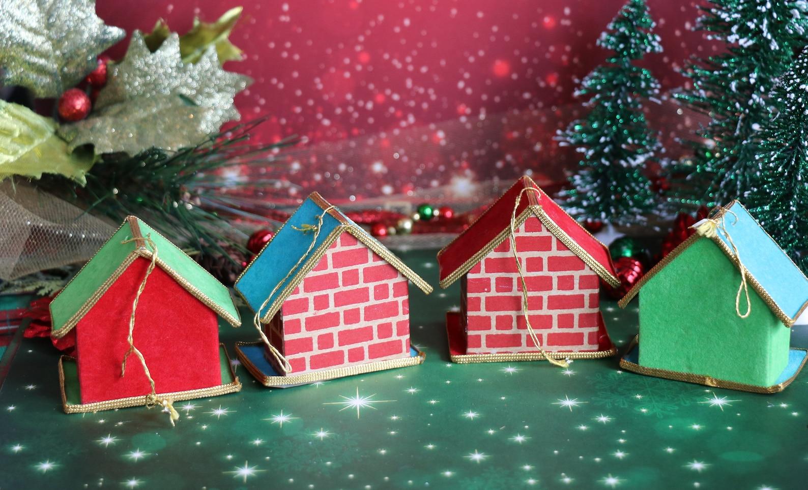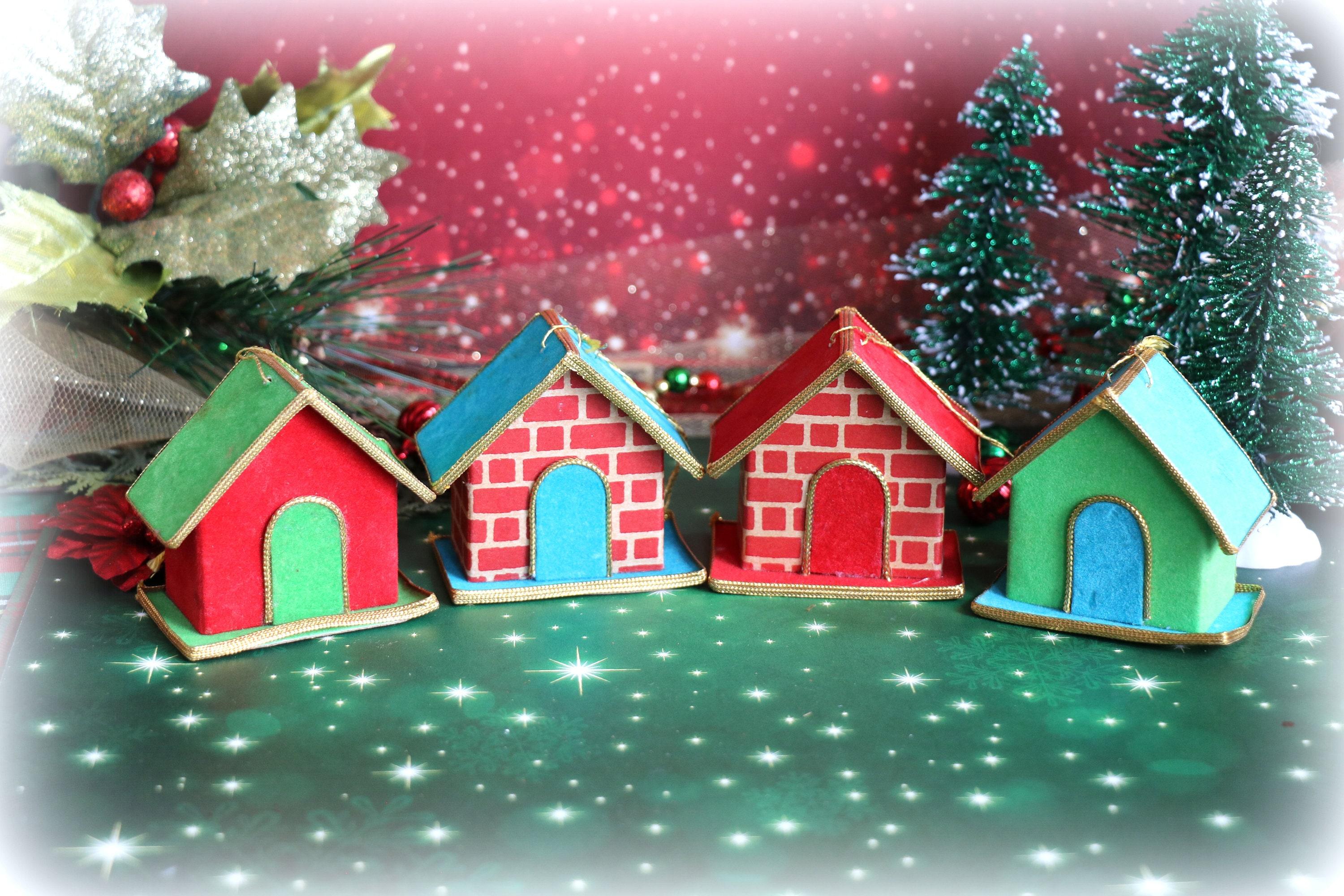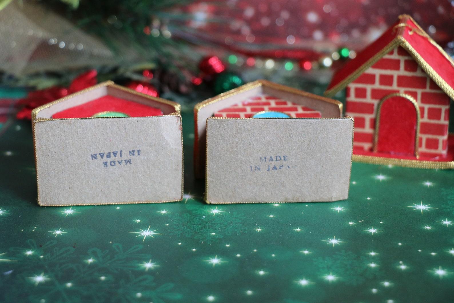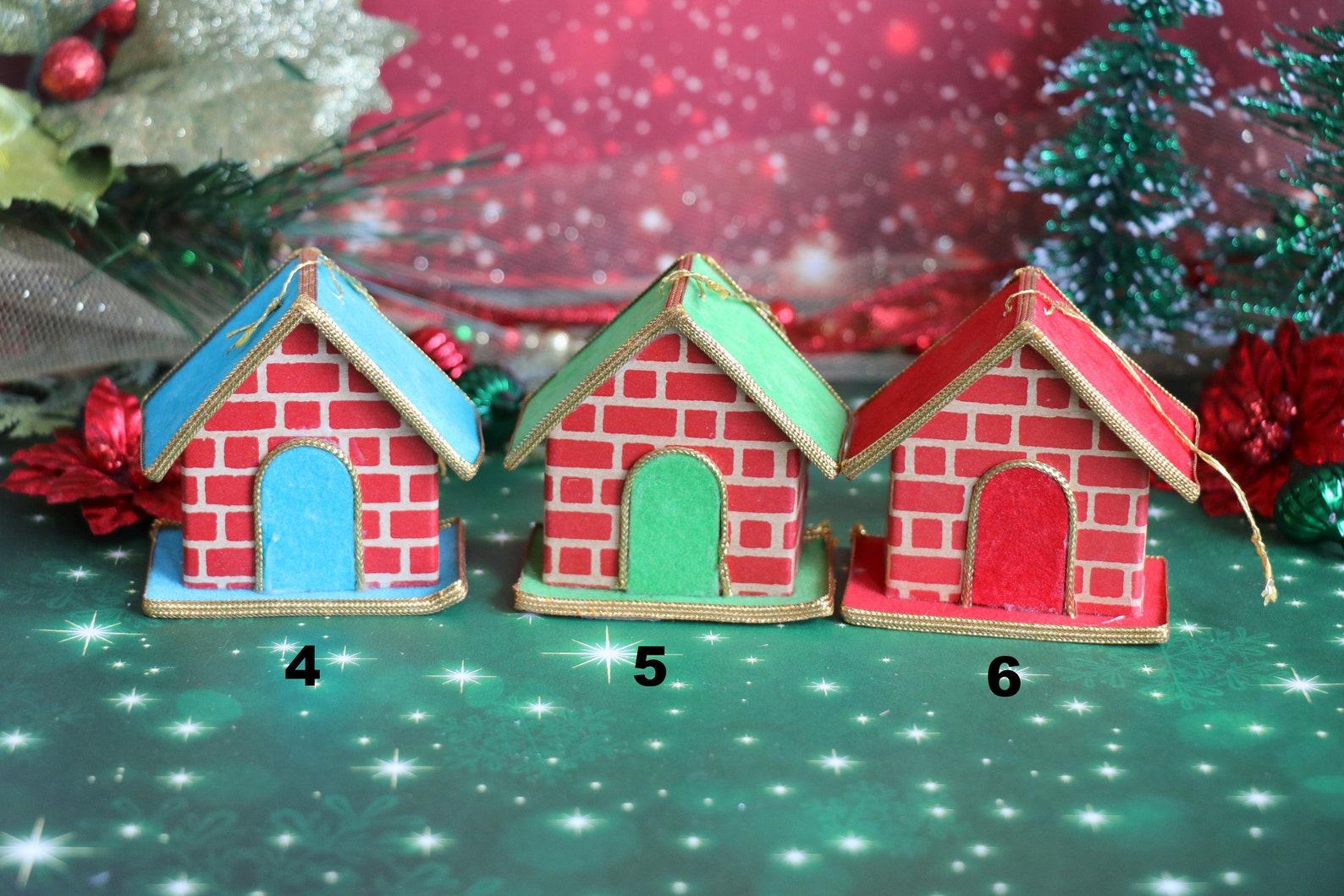 1 Vintage Miniature Felted Cardboard House Ornament By Yuletide Japan