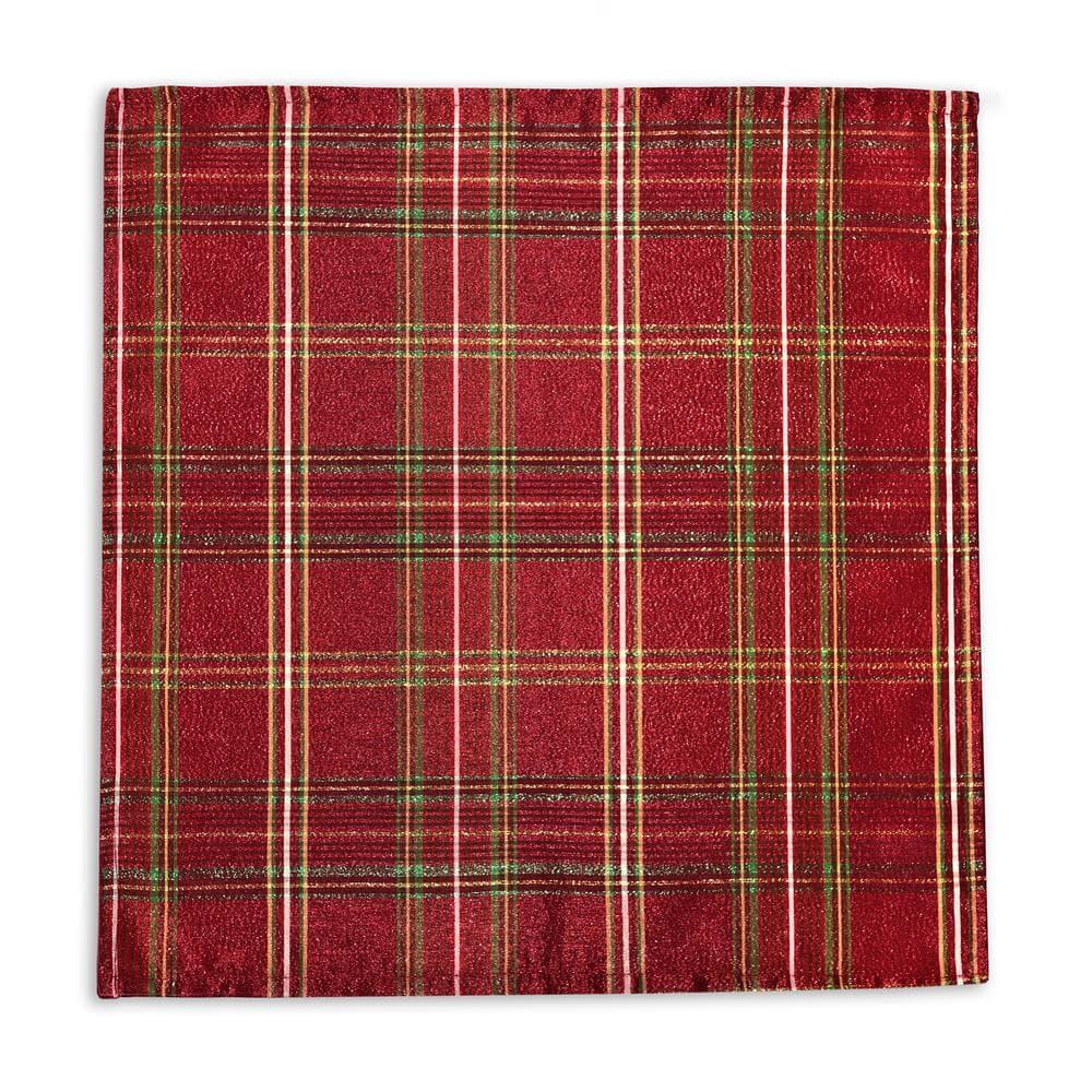 A rich, traditional Christmas-colored lurex plaid pattern, the Shimmering Plaid table linens collection is the ideal addition to your holiday decor. These eye-catching table linens are as functional as they are beautiful. With their easy care properties, once the party is over you simply machine wash and dry them and they are ready to be placed back on your table for your next event! 100% Polyester. Machine wash cold on gentle cycle. Tumble dry low. Cool iron as needed. Made in China.