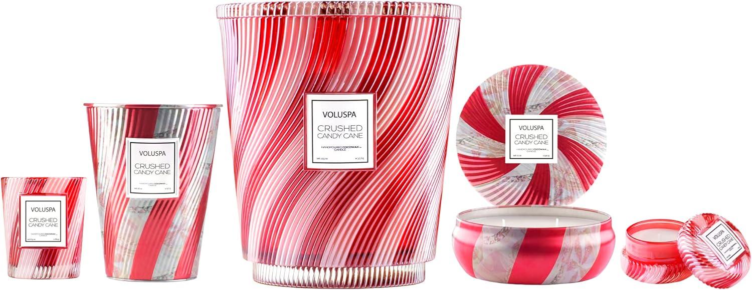 Voluspa Crushed Candy Cane Candle | Classic Boxed Candle | 6.5 Ounces | 40 Hour Burn Time | All Natural Wicks and Coconut Wax for Clean Burning | Vegan | Non-Toxic