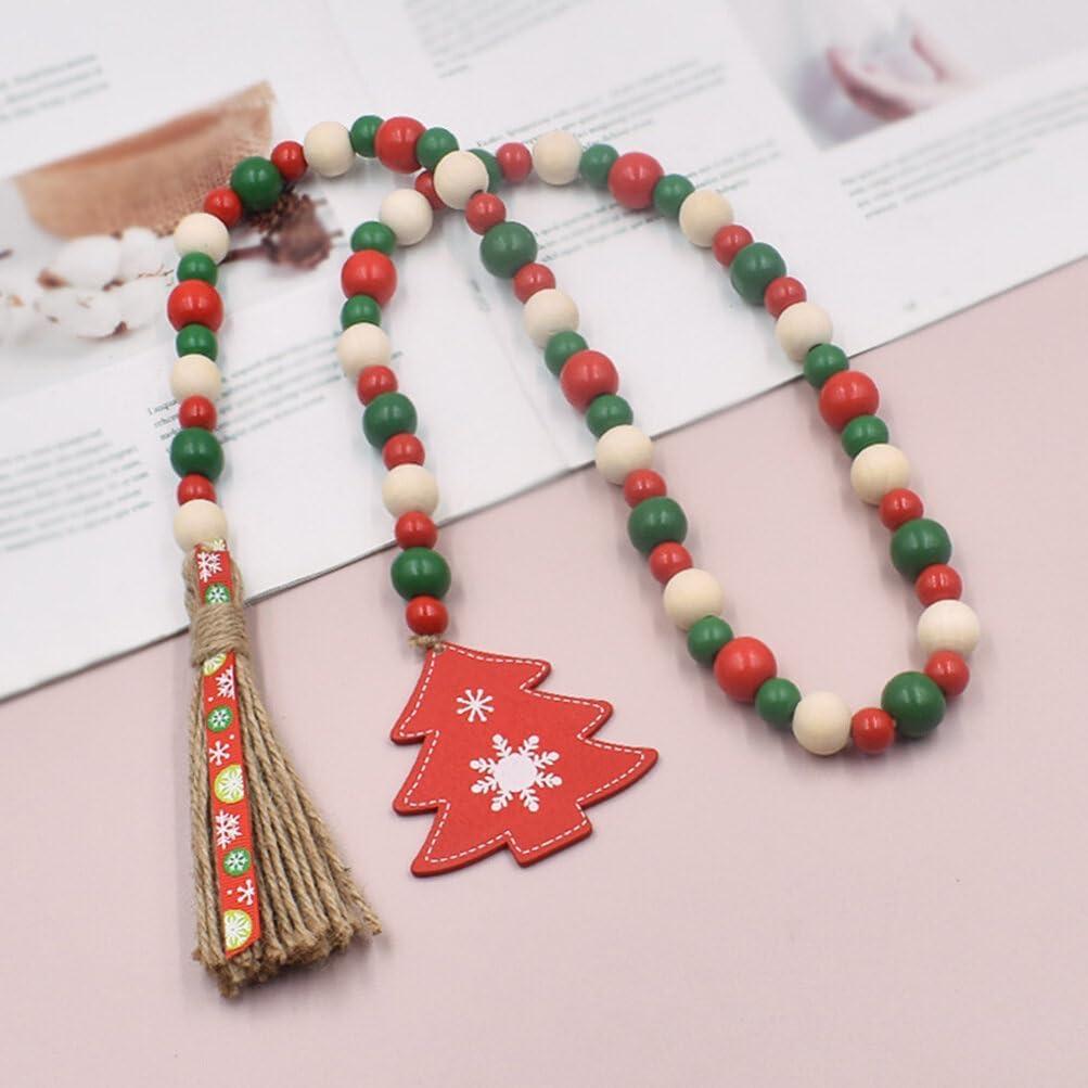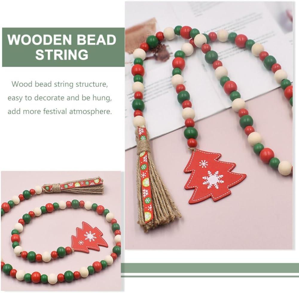 Christmas Wood Bead Garland Wreath Christmas Tree Decorations Garland Bead Strand Farmhouse Hanging Tassel Ornaments