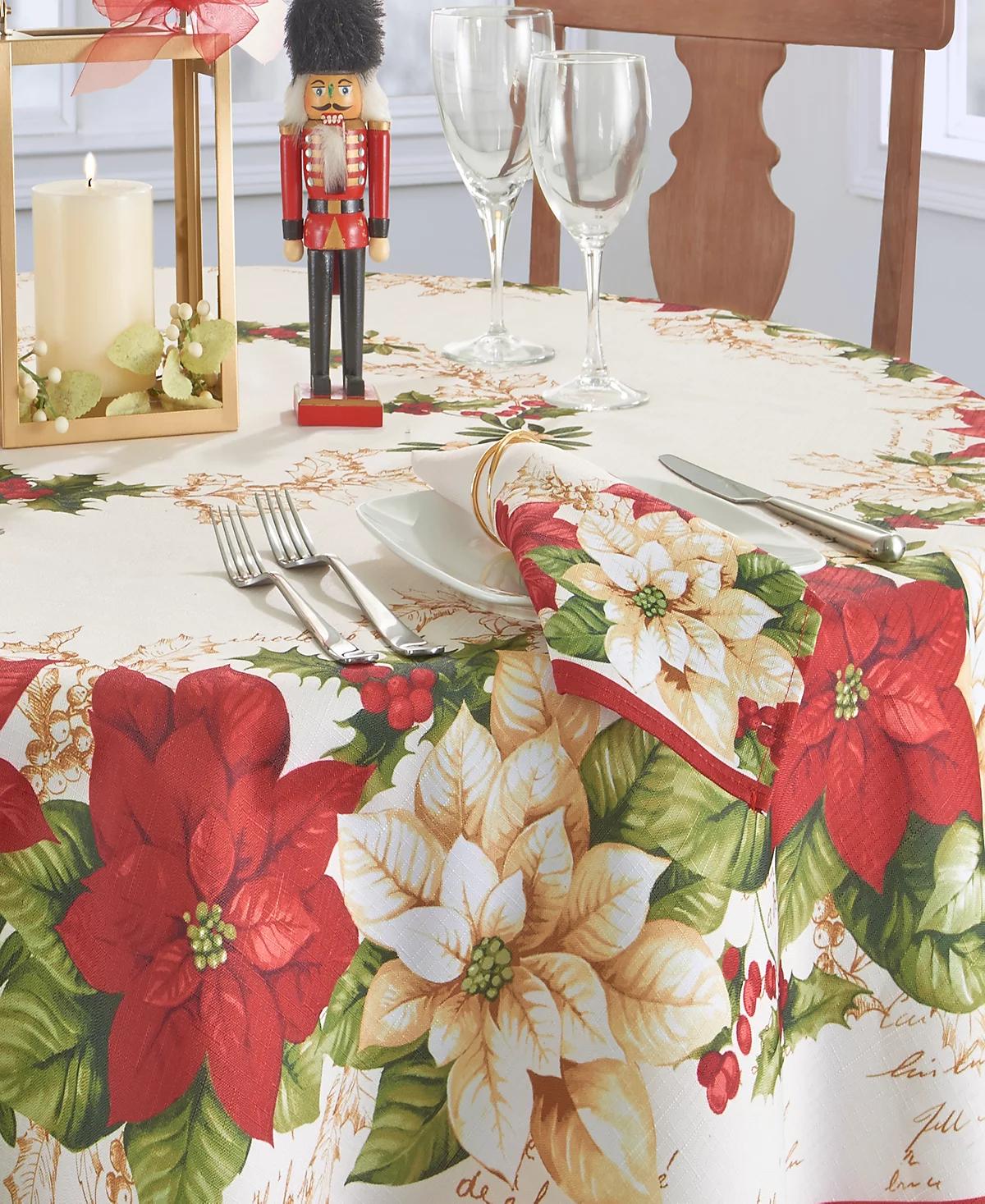 Elrene Red and White Poinsettias Napkin, Set of 4