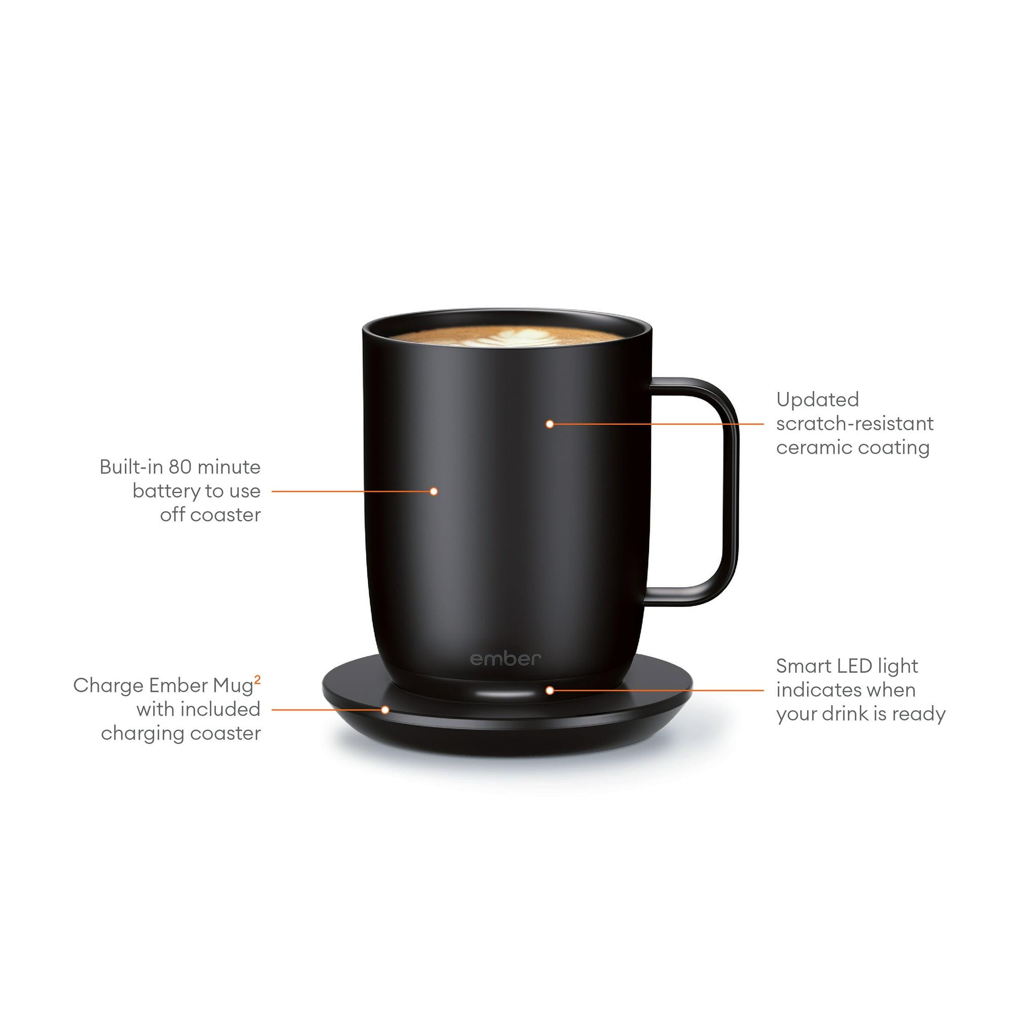 Ember Temperature Control Smart Mug 2, 14 oz, Black, Up To 1.5-hr Battery Life - App Controlled Heated Coffee/Tea Mug - Improved Design